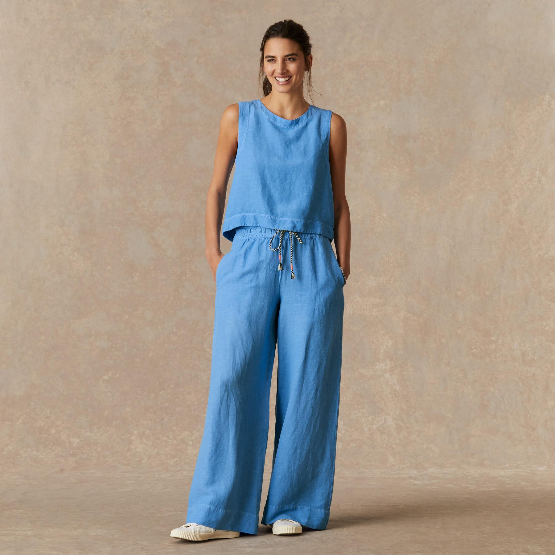Decorative stitching and double buttons add a touch of flair to this airy tank. Linen/rayon. Dry clean. Made in USA. Sizes XS (0-2). S (4-6). M (8-10). L (12-14). XL (16-18). Approx. 20.5l.