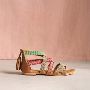 Five different intricately beaded designs form the straps of these brilliantly colored sandals. Back zipper with tassel. leather lining and insole. Leather. Imported. Whole sizes 36?C42. 36 (US 5). 37 (US 6). 38 (US 7). 39 (US 8). 40 (US 9). 41 (US 10). 42 (US 11).