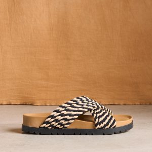 The dynamic design of these sandals is reminiscent of pathways in formal gardens. Studs wind around the insole and an adjustable ankle strap and cushioned insole add comfort. Leather. Italy. Exclusive. Whole sizes 36-41. 36 (US 5.5). 37 (US 6). 38 (US 7). 39 (US 8). 40 (US 8.5). 41 (US 9.5).