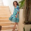 There’s so much beautiful movement in our embroidered dress with dramatic. overlaying tiers. V-neck and ties. ruffled neckline and covered eyelet buttons. Fully lined. Cupro. Hand wash. Imported. Exclusive. Sizes XXS (00). XS (0 to 2). S (4 to 6). M (8 to 10). L (12 to 14). XL (16 to 18). Approx. 51-1/4L.