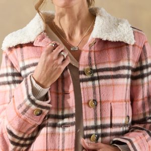 So cozy. our perfect plaid jacket has both functional and stylish utility pockets with flaps at the top and a side entry. warm Sherpa collar and a beautiful printed floral lining. Polyester/wool. Dry clean. Imported. Exclusive. Sizes XXS (00). XS (0?C2). S (4?C6). M (8?C10). L (12?C14). XL (16?C18). Approx. 21l.