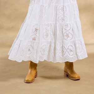 Our easygoing Ensenada Skirt features breezy tiered eyelet in a versatile midi length with a forgiving elastic waistband and a charming scalloped hem. Cotton. Machine wash. Imported. Exclusive. Sizes XS (0-2). S (4-6). M (8-10). L (12-14). XL (16-18). XXL (20-22). Approx. 36l.