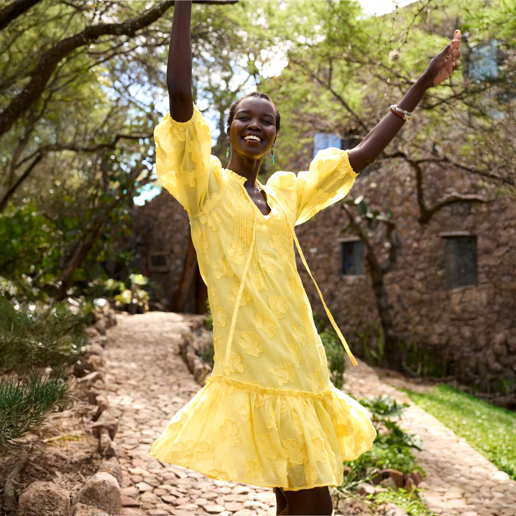 With feather-light fabric and modest coverage. our Fanciful Florals Dress is the perfect seasonal transition piece. Clipped jacquard fabric with pintuck details. notch neck. elastic sleeves and ruffled hem. Separate slip. Nylon/viscose/cotton. Machine wash. Imported. Exclusive. Sizes XXS (00). XS (0–2). S (4–6). M (8–10). L (12–14). XL (16–18). Approx. 35.5l.