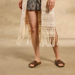 The ultimate neutral statement layer. our Island Sands Duster is absolutely brimming with special details??from mixed-stitch construction and hand-crocheted details to flirty fringe. Open front; patch pockets. Cotton. Hand wash. Imported. Exclusive. Sizes XS/S (0?C6). M/L (8?C14). XL/XXL (16?C22). Approx. 42l.