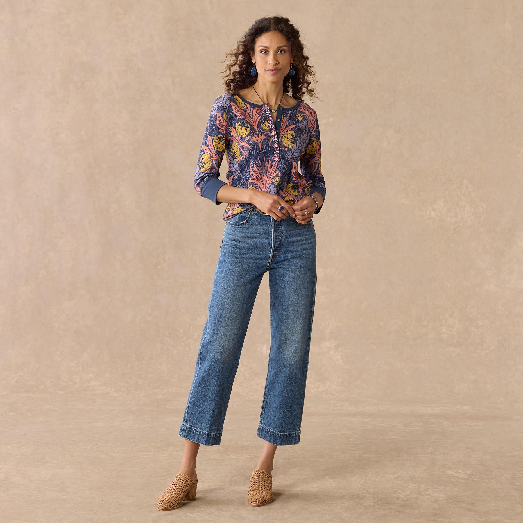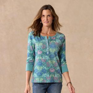 Our thermal henley in an oversized placed floral print is so lovely with embroidery at the placket. metal buttons and contrast twill tape details. Cotton/spandex. Machine wash. Imported. Exclusive. Sizes XXS (00). XS (0–2). S (4–6). M (8–10). L (12–14). XL (16–18). Approx. 23.5l.
